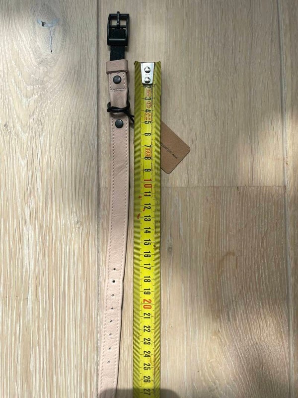 De lengte is gemeten vanaf het leer: de gesp en het elastiekje worden niet meegerekend.