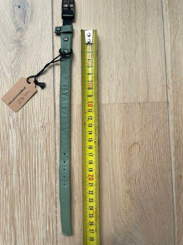 De bandjes van 23 cm zijn Kitten-bandjes . Hier krijg je na het kiezen een verzamelfoto te zien maar je kunt duidelijk zien welke kleur de gesp is. Kitten halsbandjes zijn extra dun en licht.
